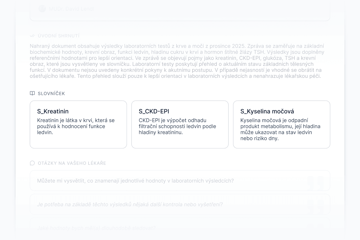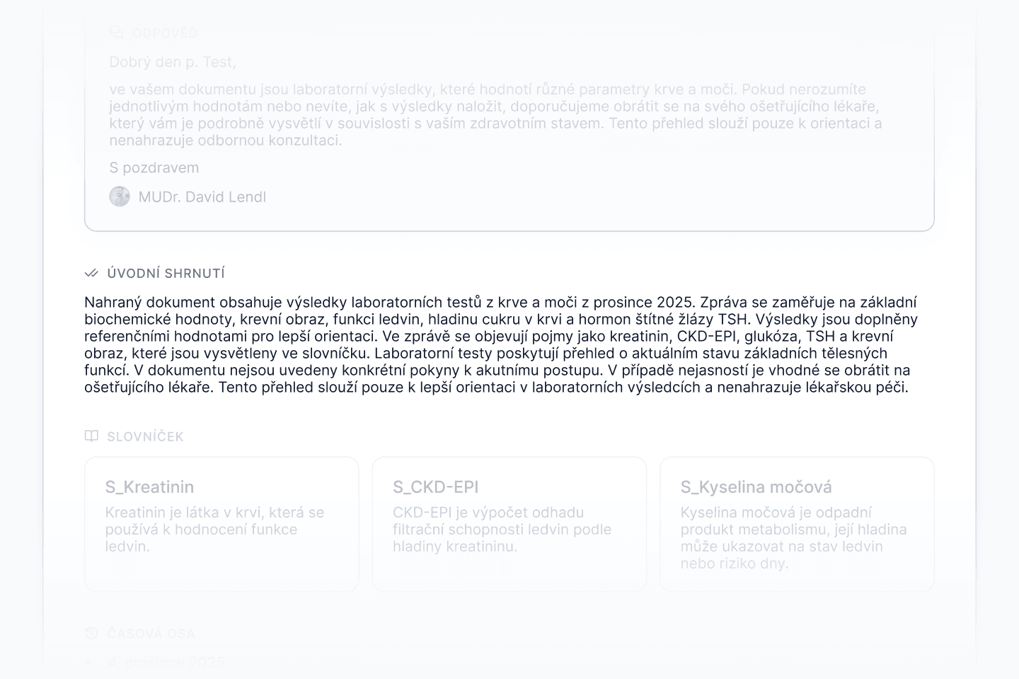Přehledný report z vaší zdravotní dokumentace převedený do lidské řeči. Základní cena zahrnuje standardní rozsah dokumentů.